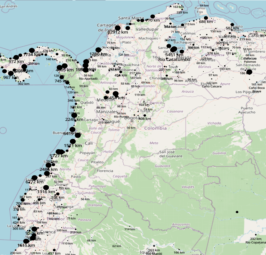 Se ha realizado una corrección de ríos y terminación de cuerpos de agua en mares u otros países. No se ha terminado, pero se ha avanzado bastante, de manera que solo la región Andina y región Caribe son las que quedan con ríos y quebradas por conectar.