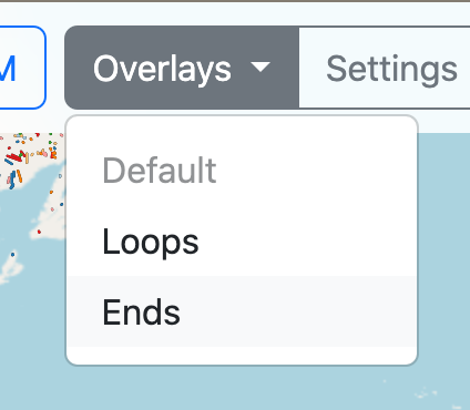 Para ver las terminaciones de ríos y quebradas, en Overlays se escoge Ends.
