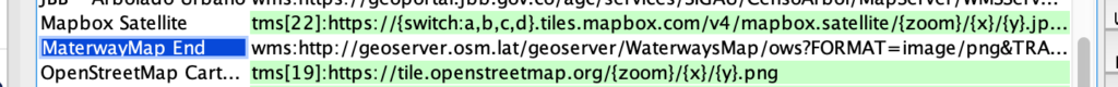 Para agregarlo, se siguen los mismo pasos de agregar la capa de WaterwayMap, solo que con los siguientes datos: