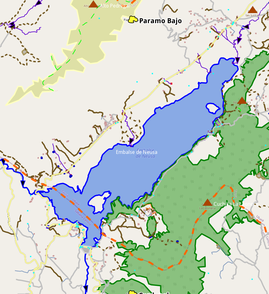Volviendo al embalse del Neusa, no se ve un waterway en la mitad que conecte a todas las quebradas y termine en la parte sur: