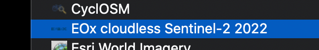Si ambas capas satelitales tienen nubes, se puede usar la capa EOx Cloudless, para identificar los ríos grandes. Esta es una imagen satelital sin nubes, pero de muy baja resolución, por lo que se ve muy borrosa, aunque se puede identificar el cauce del río.