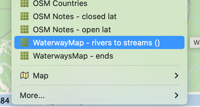 Por ejemplo, puede que una quebrada haya sido mapeada aguas arriba como River y después Stream. Entonces, la parte en River se pasa a Stream.