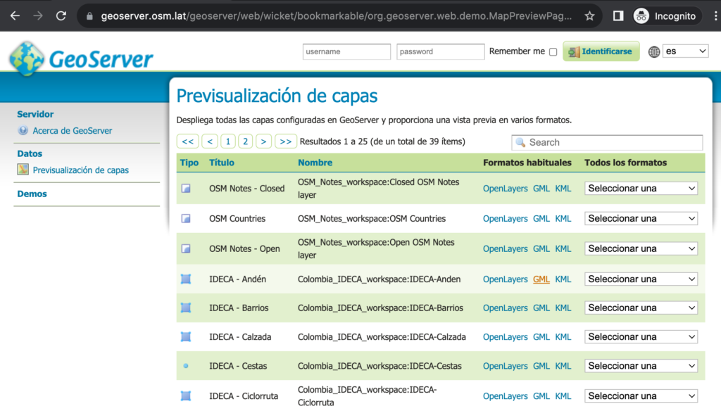 - https://geoserver.osm.lat/geoserver/Colombia_IDECA_workspace/wms?